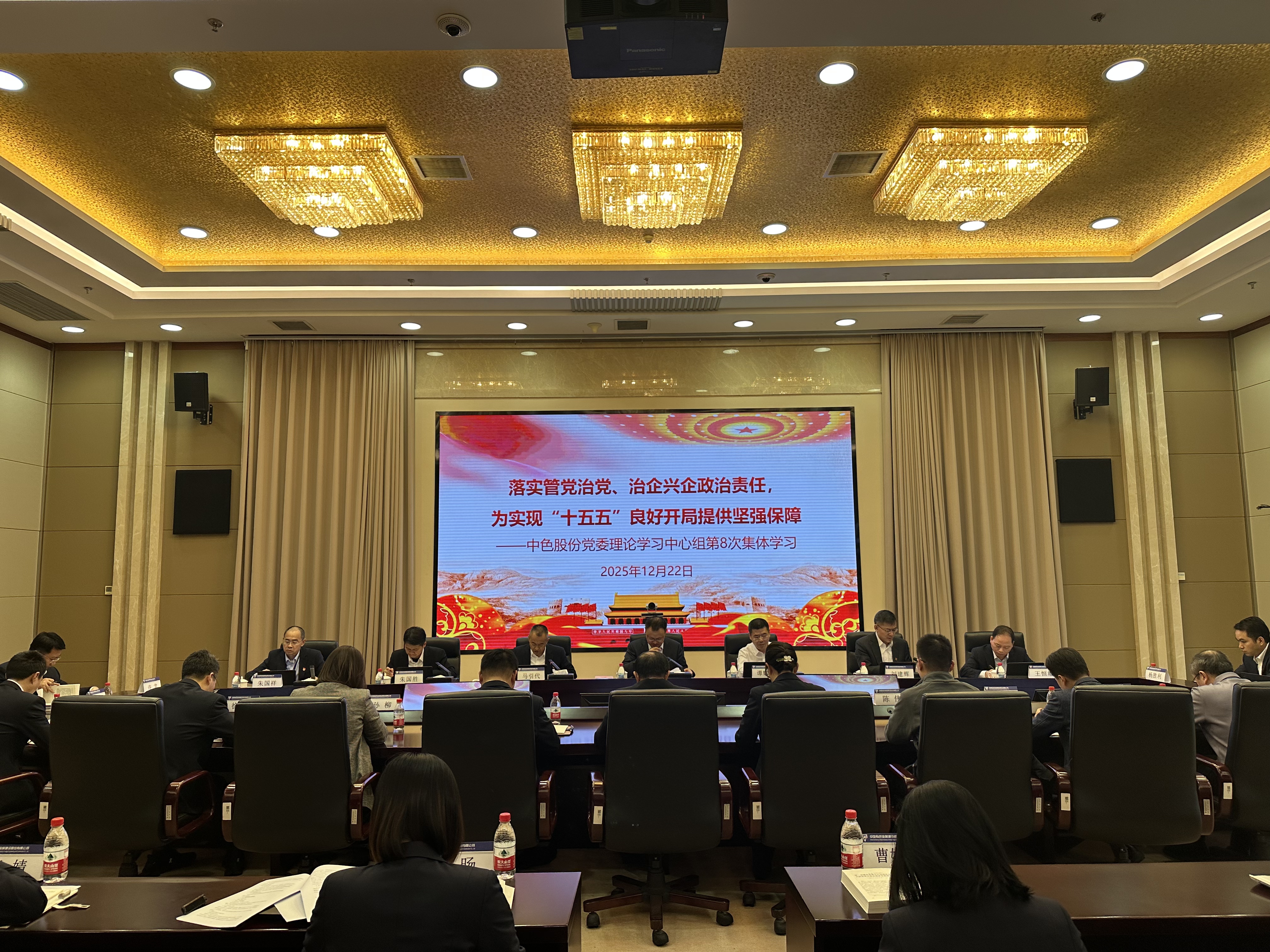 为深入学习领会习近平总书记关于党的自我革命的重要思想,深入贯彻党的二十届四中全会精神,全面落实中央经济工作会议要求,自觉把思想和行动统一到党中央的重大决策部署上来,12月22日,中色股份党委理论学习中心组召开扩大会议,集中学习了《习近平谈治国理政(第五卷)》、习近平总书记关于加强党的自我革命重要论述、习近平总书记关于干部担当作为的重要讲话精神及中央经济工作会议精神等内容,结合企业改革发展实际,以“落实管党治党、治企兴企政治责任,为实现‘十五五’良好开局提供坚强保障”为主题开展交流研讨。集团公司党委委员、副总经理,中色股份党委书记、董事长刘宇主持会议并作主旨发言。